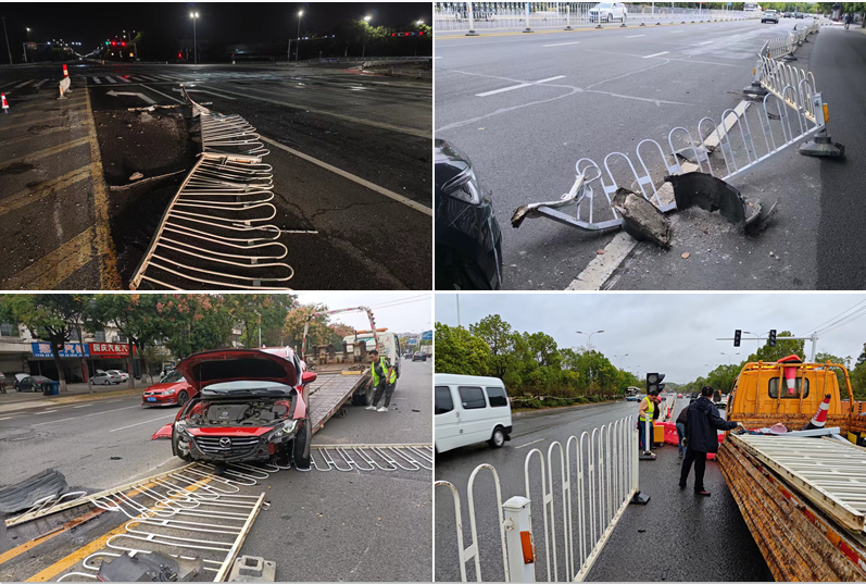 10月3日凌晨3時,當(dāng)白天喧囂的假日氛圍逐漸平息,同控交通設(shè)施公司突然接到我市交通指揮中心的緊急通知:集賢路八佰伴附近一處道路護(hù)欄遭到車輛撞毀,急需修復(fù)。接通知后,同控交通設(shè)施公司立即啟動應(yīng)急預(yù)案,值班人員第一時間前往事故現(xiàn)場。經(jīng)過近一個小時的高效處理,損壞的道路護(hù)欄得到有效修復(fù),道路恢復(fù)暢通,確保了市民的出行安全。